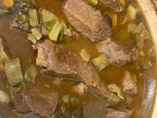 נתחוני עגל בציר בקר וירקות שורש,בצל,גזר,סלרי ושומר.1 ק"ג